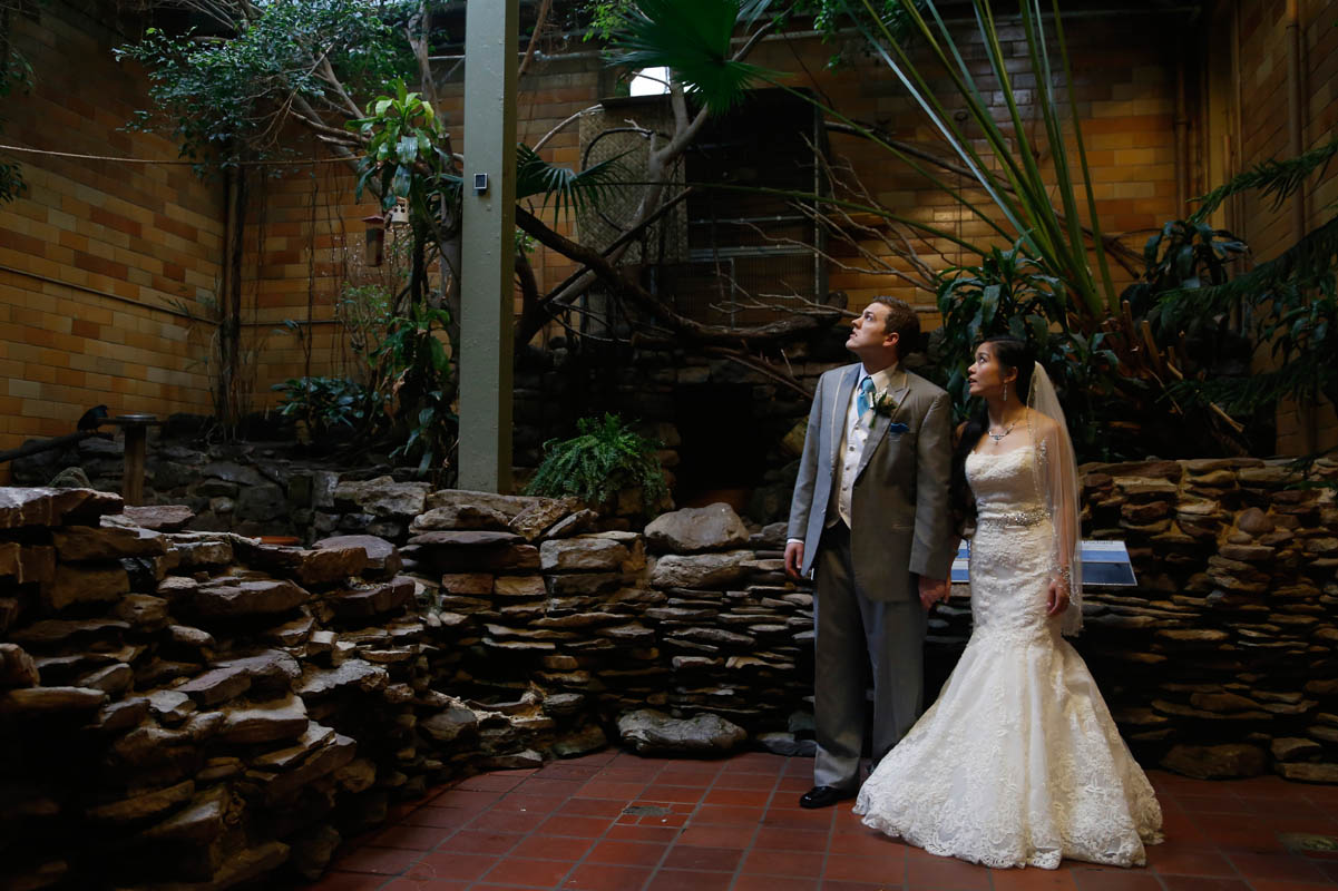 The wedding started out at Nazareth College in the inspiring Linehan Chapel and soon after took a turn towards less formal and very fun, with a reception at the Seneca Park Zoo! Its definitely the first time I photographed a bride and groom with a rhinoceros and a bald eagle, and I certainly hope to do it again!