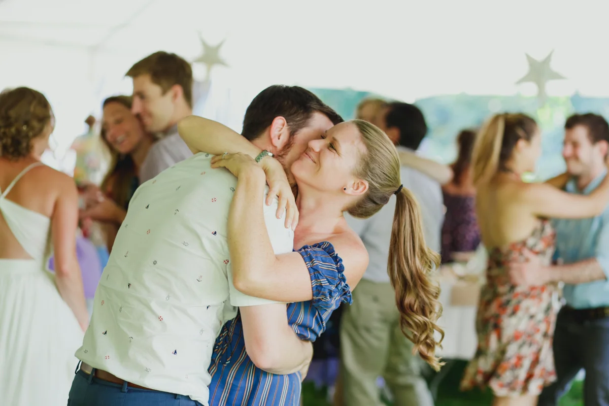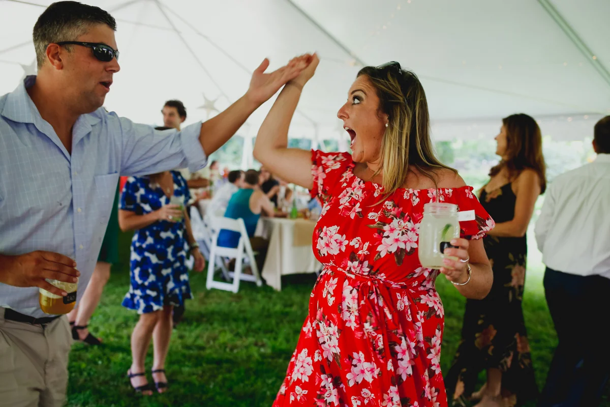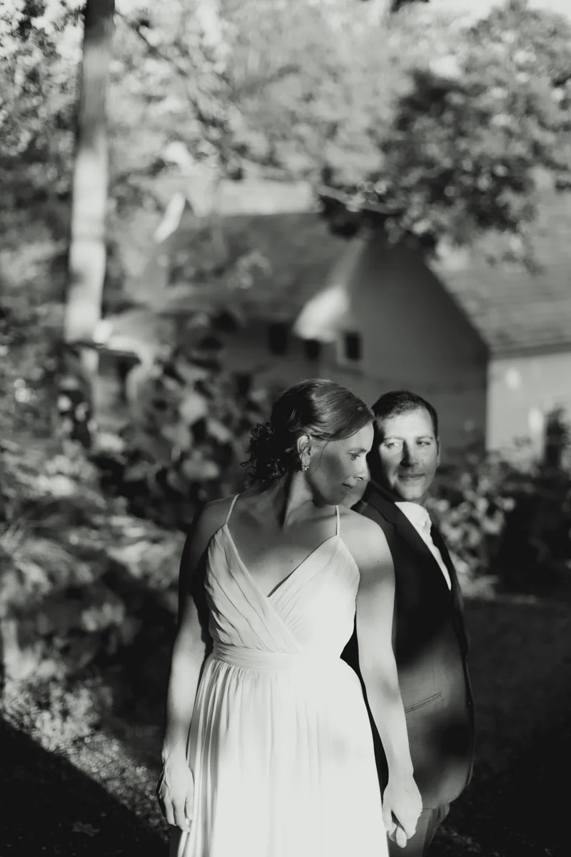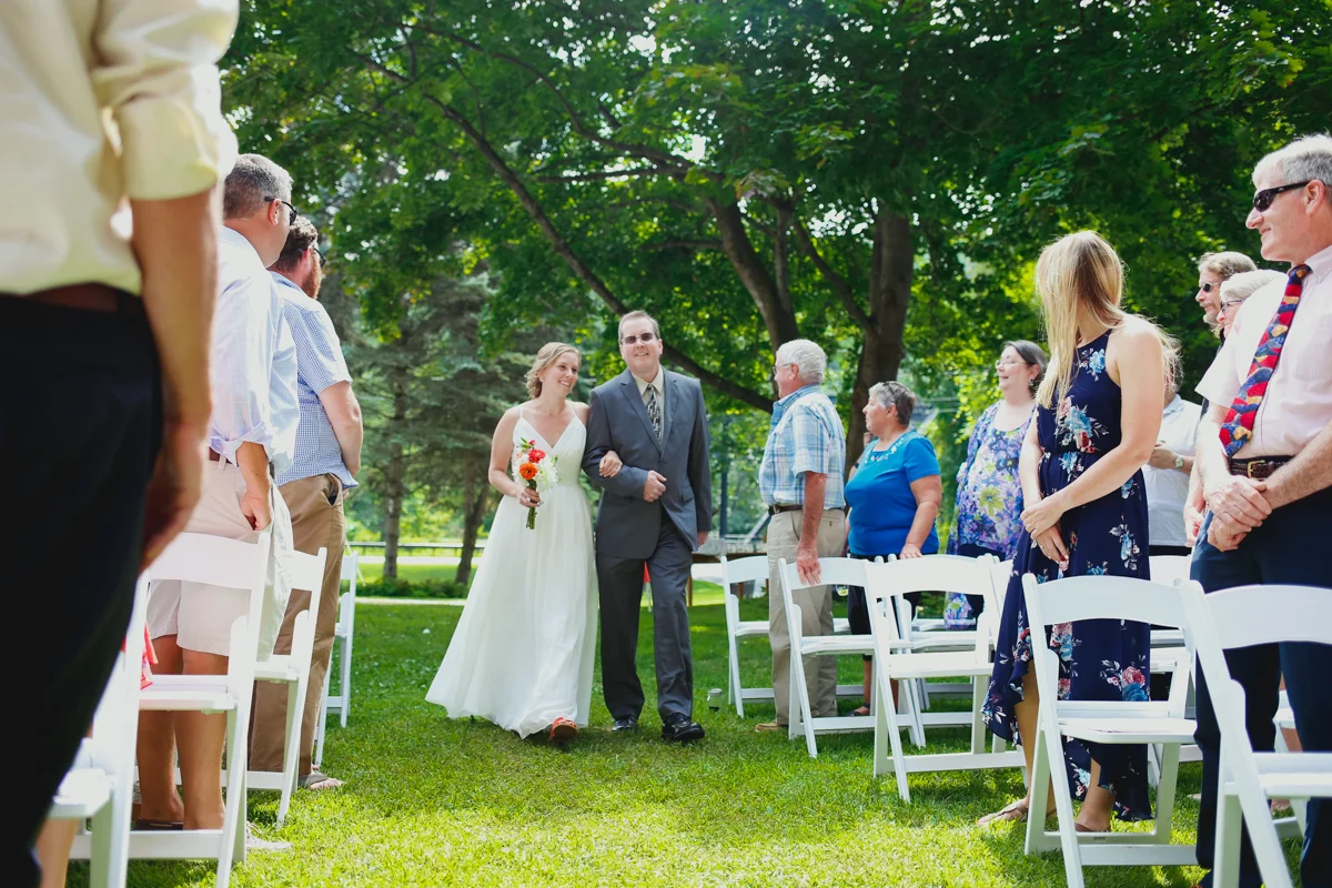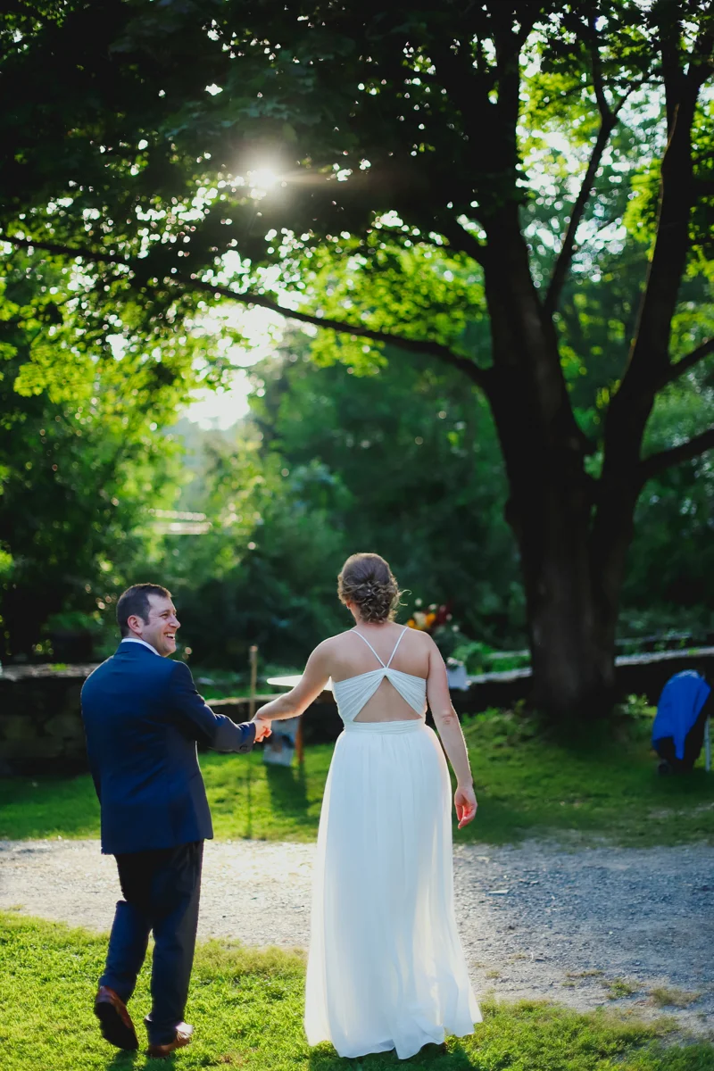 When I first talked to Kayla last summer about her wedding, she mentioned that she and Jordan preferred hosting a music festival at their house than a traditional wedding, and Jeff and I loved watching it come together. For the past year Kayla and Jordan have tirelessly renovated their old farmhouse home on the Black River in Springfield, Vermont, revived garden beds and planted new ones, and done all the planning and work required to host a wedding in your own yard. Each part of the day happened in a different part of their yard, and people seamlessly flowed from the ceremony, to cocktail hour, to yard games, dinner, and dancing to the live music of Josh Panda and the Hot Damned, a band Kayla and Jordan often went to see up in Burlington.