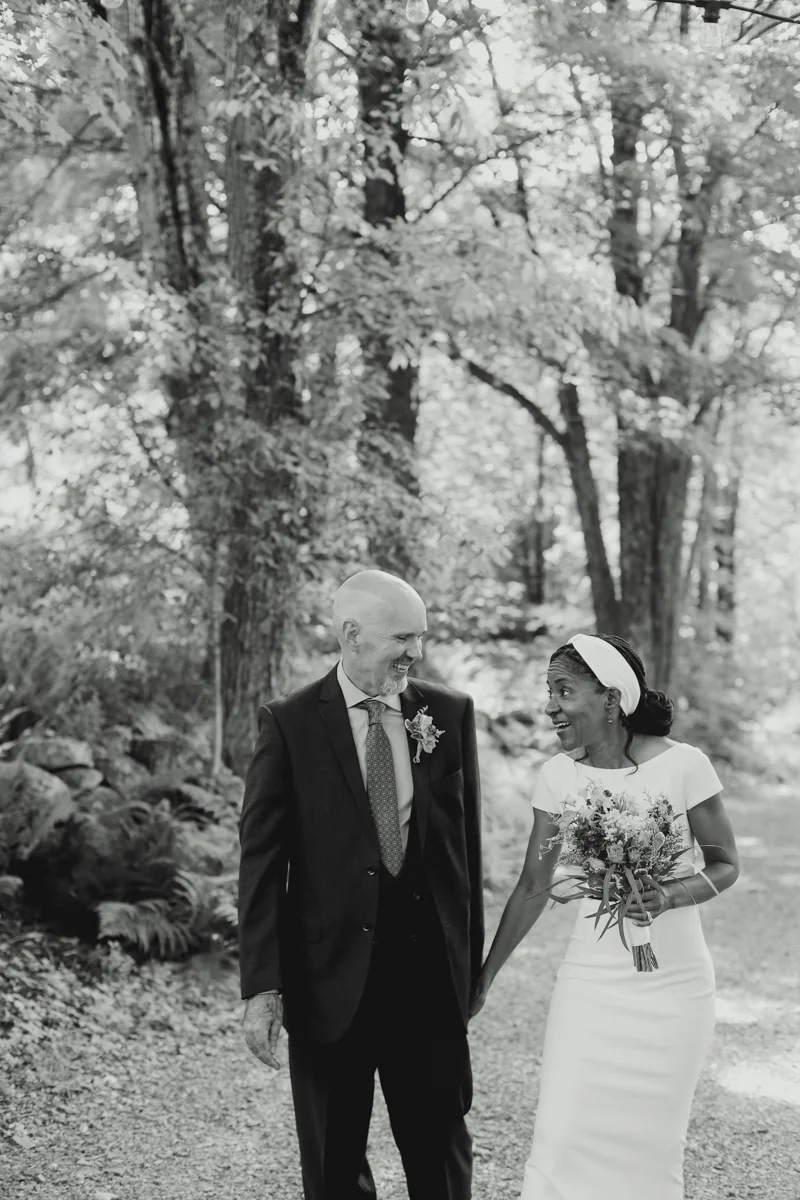 When it comes to photographing elopements, I (Sarah) generally photograph them solo, to keep with the theme of quiet intimacy that elopements lend to. I often don’t get to meet the couple until a few minutes before their ceremony, and quickly get to know them before their ceremony begins, then spend more time hanging out with the both of them after they say their vows. I’ve never fallen in love with a couple more quickly than I did with Rhonda and Kevin, feeling totally comfortable with each of them in the moments before they walked down to the forest amphitheater for their joyful, simple ceremony. Rhonda and Kevin emanate sweetness, and layered their interactions with each other and towards me with reverence and compassion. It was an honor to get to be a witness to their wedding and spend a sunny afternoon finding good light for portraits!