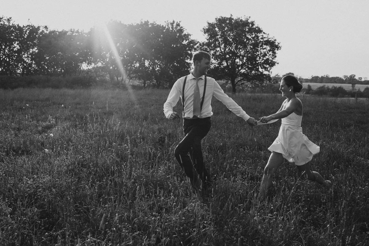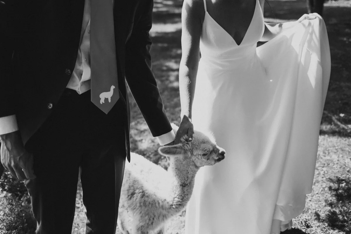 At dusk on Saturday night after the speeches had been made and guests had their fill of delicious wood-fired pizza, everyone was called outside to watch something we’d never seen before at a wedding. Friends and family were directed to stand on either side of an invisible aisle of grass as Anna and Jamie were handed a bucket of grain and told to stand in the center of the aisle. A gate open and dozens of hungry alpacas stampeded down the middle, chasing Anna and Jamie as their guests cheered! This “running of the alpacas” was only one of many unique and memorable events that made Anna and Jamie’s wedding a favorite of ours this year.